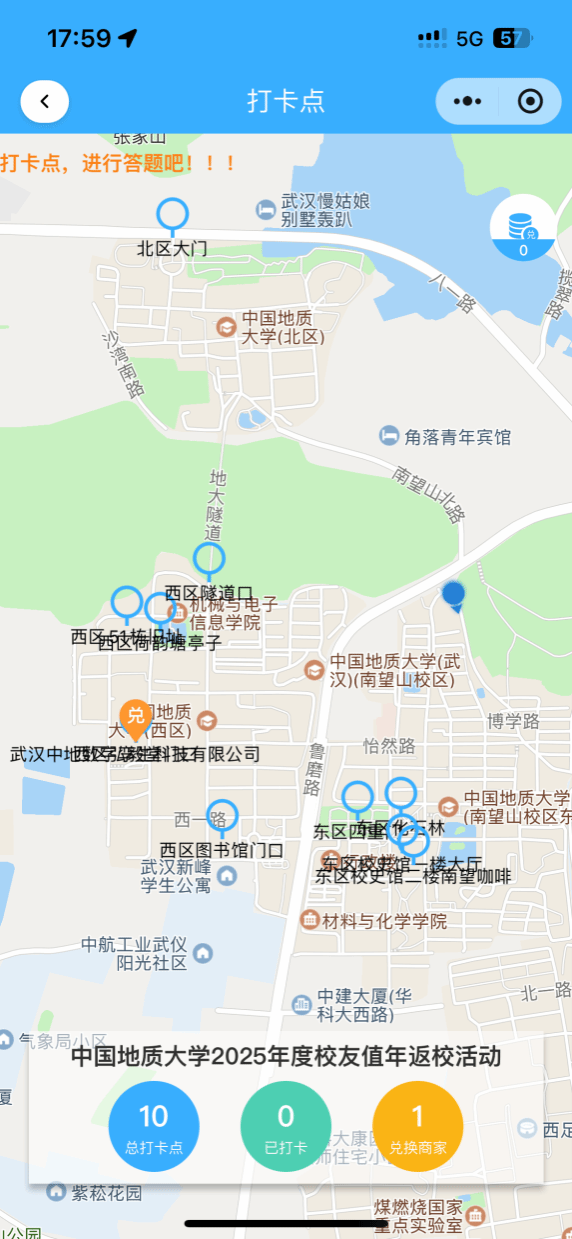 线上打卡:在南望山校区东区、西区、北区共设置10个线上打卡点位。