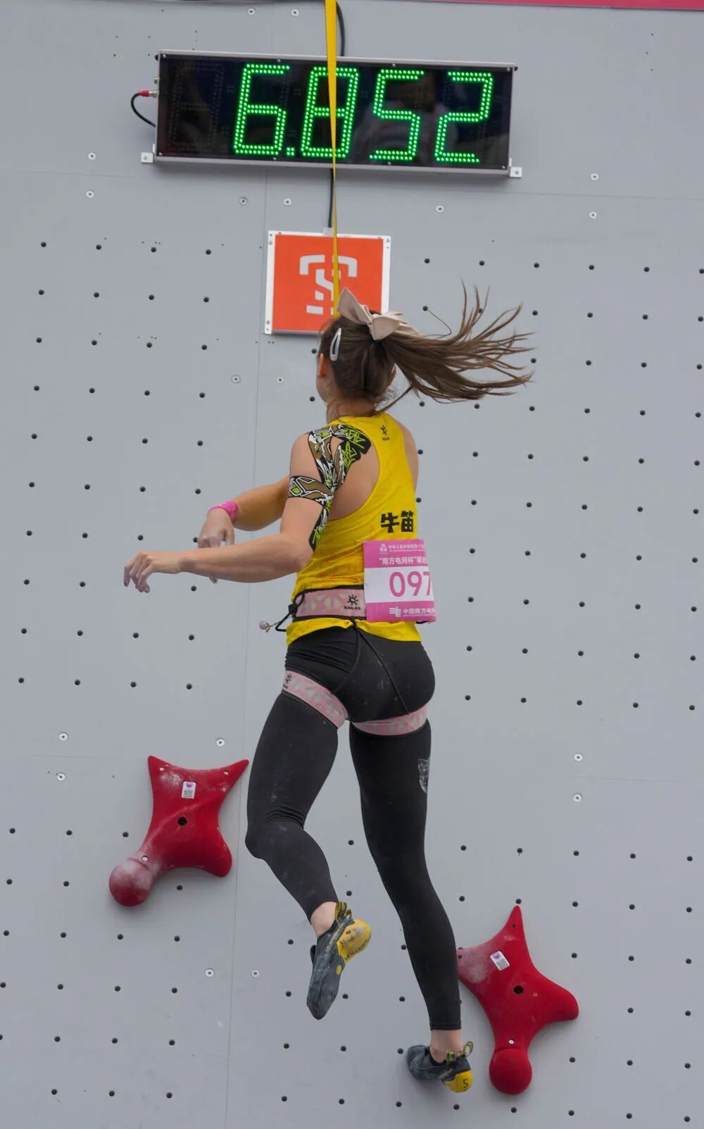 在女子速度攀岩决赛中,校友牛笛代表湖北队出战,最终获得第五名。