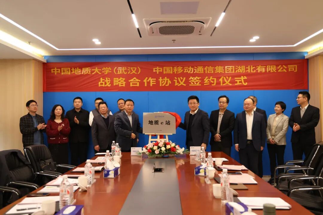 ▲学校在中国移动湖北分公司挂牌“地质e站”