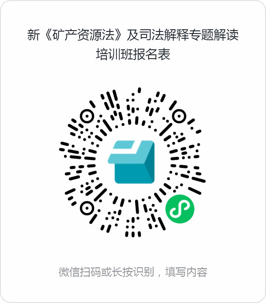 微信扫描下方二维码在线报名,请在2026年4月14日前完成,缴费时备注“姓名+矿产资源法培训班”。限额100人(额满为止)。