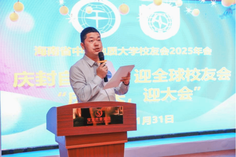 张振豪会长在致辞中说,一年来,海南省中国地质大学校友会在四个方面做了大量务实的工作,取得了良好成绩及效果:一是在联系母校、联谊校友、联系兄弟校友会方面,二是在海南省中国地质大学校友会与全国兄弟院校海南校友会之间交往与交流方面,三是在参与海南自贸港建设和服务海南地方经济与文化建设方面,四是在申请并获得“2026年第七届地质资源环境高峰论坛暨中国地质大学第十四届全球校友会会长秘书长联席会”(以下简称“2026年大会”)承办权等四个方面。张会长最后深情地对一年来参与和支持我会工作的海南校友、兄弟校友会校友、兄弟院校海南校友会同仁致以衷心感谢。同时,热烈欢迎大家以各种形式踊跃参与和支持“2026年大会”,积极参与大会前开展的各类热身活动。