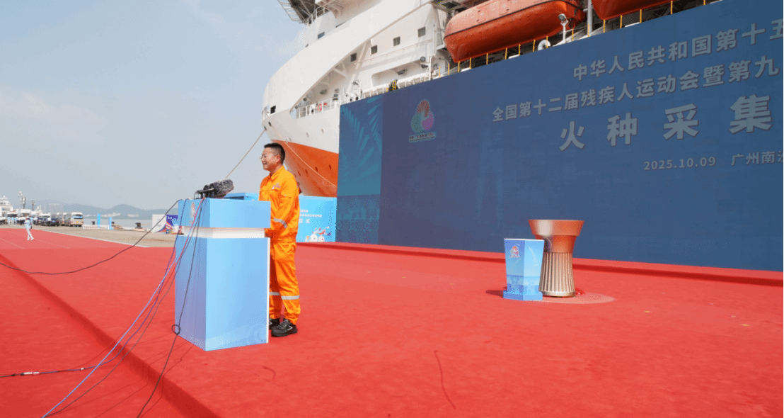 10月9日上午,位于广州市南沙区的广州海洋地质调查局科考码头气氛热烈。在“梦想”号大洋钻探船的见证下,第十五届全国运动会、全国第十二届残疾人运动会暨第九届特殊奥林匹克运动会火种采集仪式在广州举行。此次火种采集活动包含“源火”采集与“圣火”点燃两大环节。活动现场,采集自深海的“源火”首度揭晓其神秘面纱。
