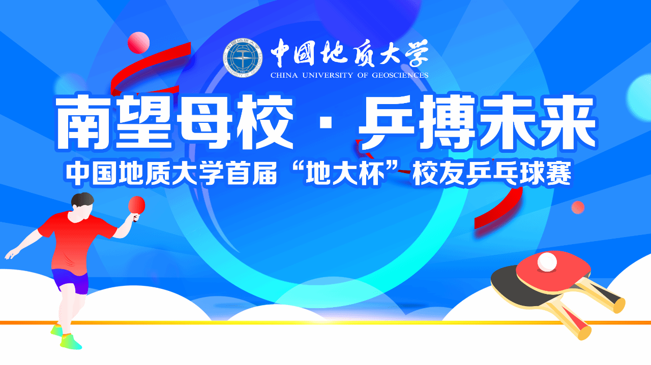 为加强各校友会联络,凝聚校友情感,传承地大体育精神,厚植母校校友文化,学校定于近期举办“南望母校、乒搏未来”首届“地大杯”校友乒乓球赛。希望校友运动员秉承“艰苦朴素,求真务实”校训精神,赛出友谊,赛出成绩。本次活动具体通知如下: