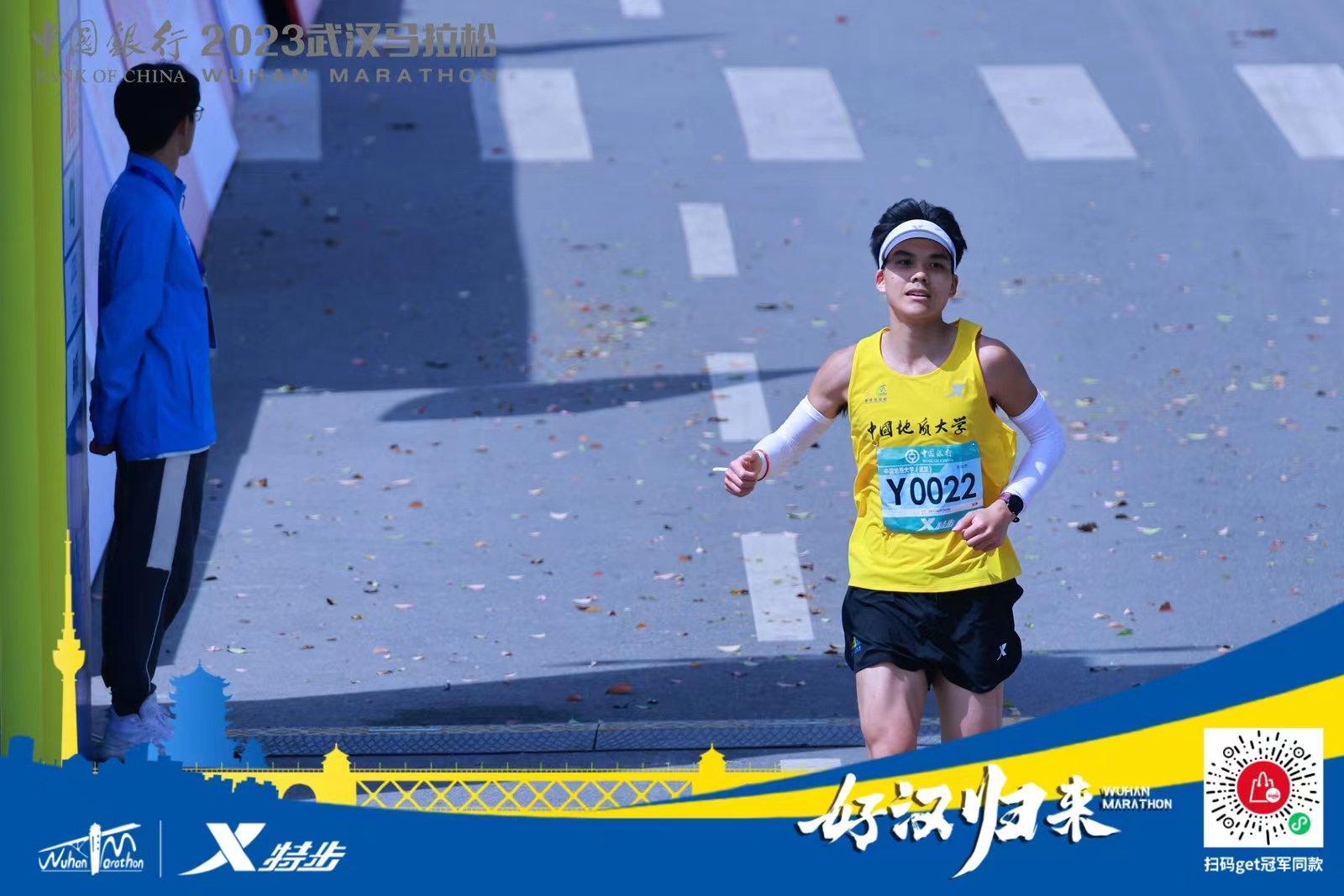 地大选手们身着鲜艳的黄色背心,印着地大校名。在赛道两旁加油助威的热心市民们,高呼着“中国地质大学加油”“地大同学加油”;在赛道上同样参赛的地大师生与教工们,也彼此加油鼓劲。在奔涌的长江边,在东湖的波光旁,在充满历史气息的老城区,在洋溢着呼喊尖叫的欢乐谷,地大精神与汉马精神在赛道上交相辉映。