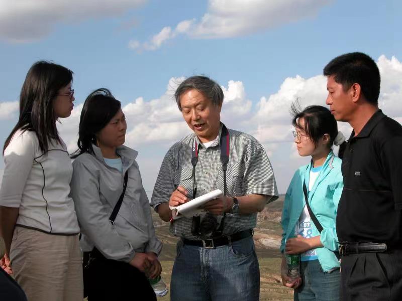 2004年8月,李思田教授在鄂尔多斯盆地神山沟进行野外考察