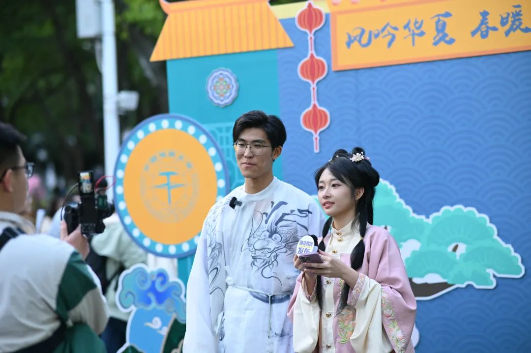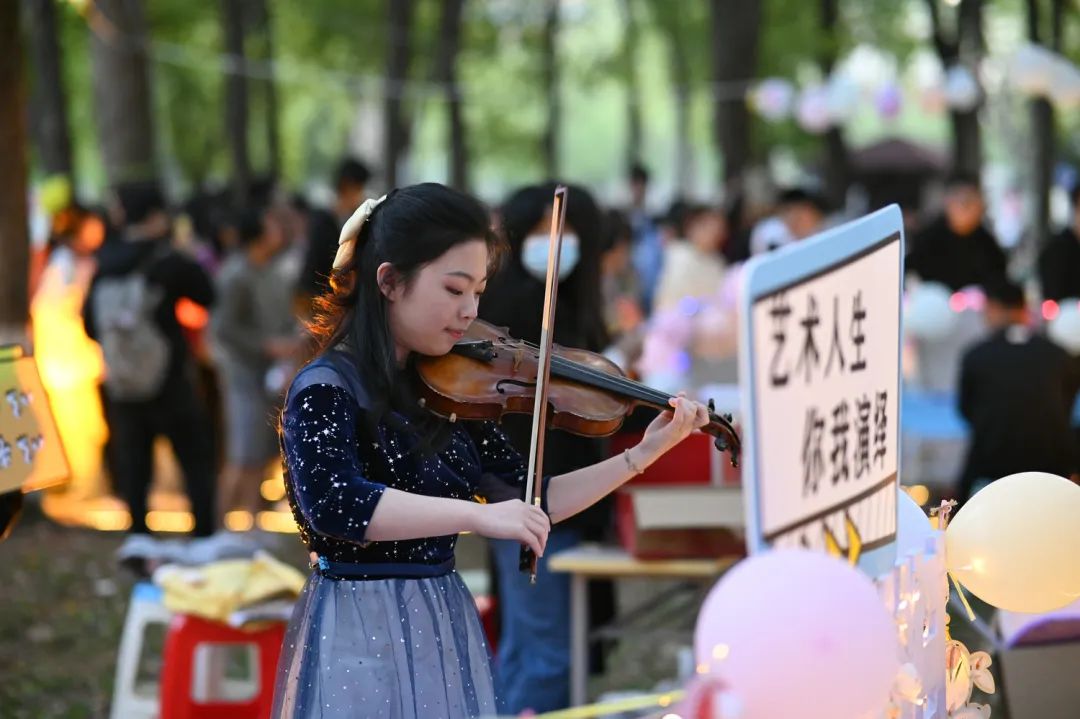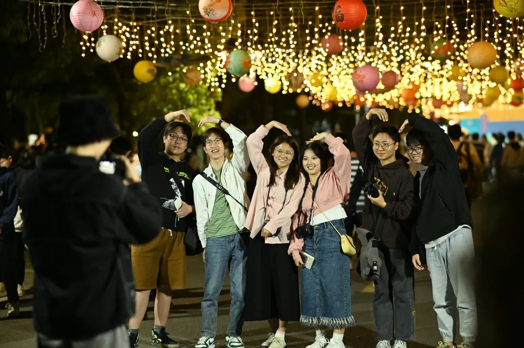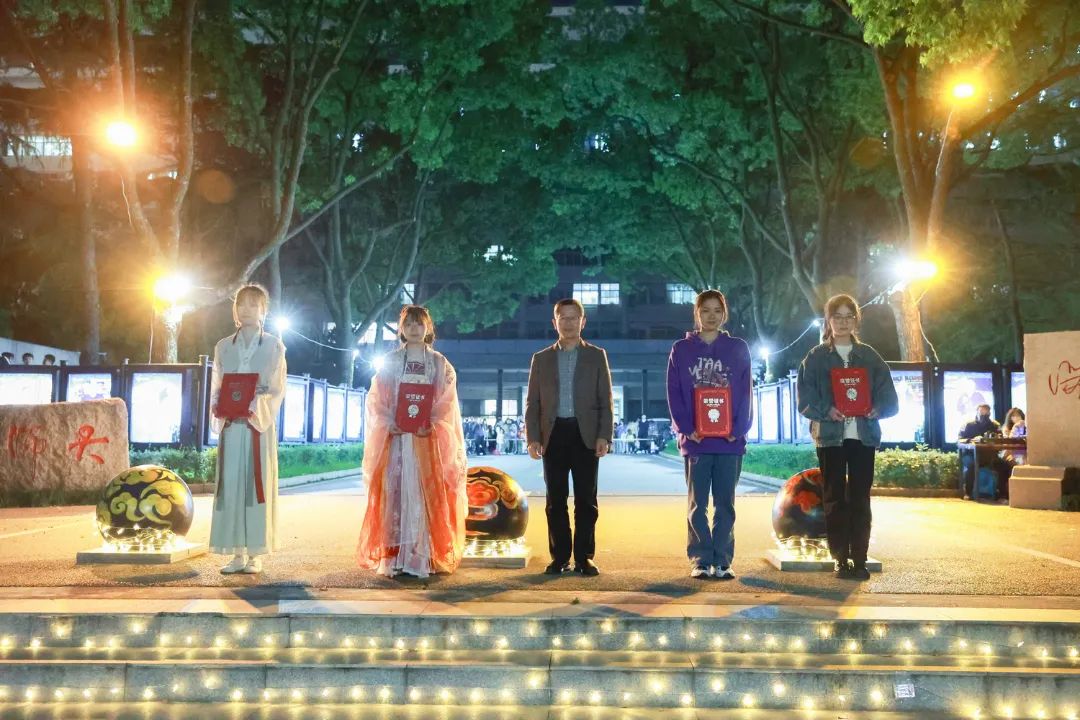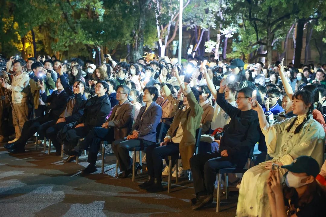 在灯会前期策划筹备的过程中,社团联合会发动学生社团、学生组织发挥巧思妙想,充分利用学校现有的场地空间,将景观设计、表演内容与校园环境有机融合,着力打造“一步踏入画卷,一眼望尽千年”的沉浸式体验。“刚开始提出把灯会放在平日安静的树林里时,所有人都觉得这是一件不可能的事情。但经过反复论证推敲、实地考察后,我们决定挑战这个脑洞大开的想法。”周佳贺说。